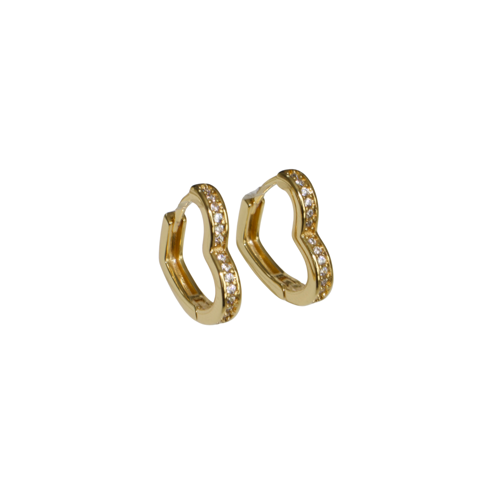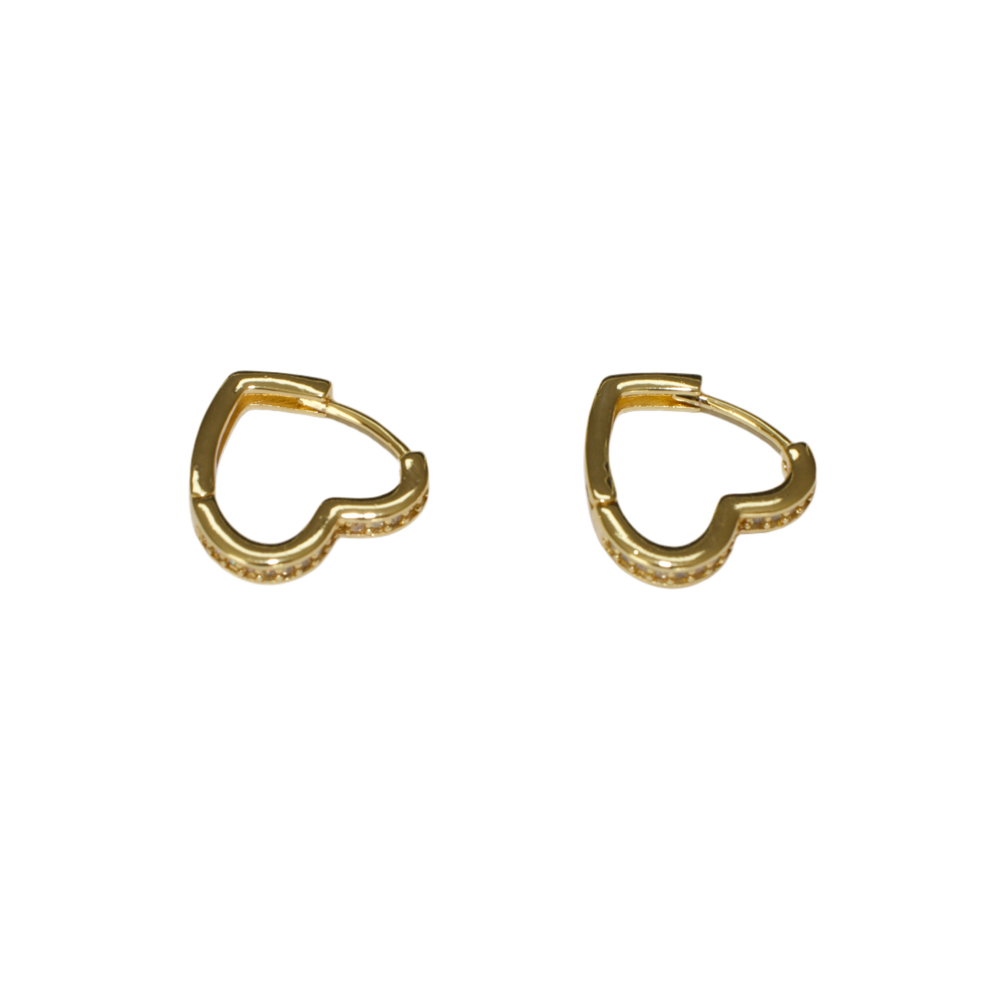 14K GOLD FILLED DAINTY CZ LINED HEART HUGGIE CLICKER EARRING.