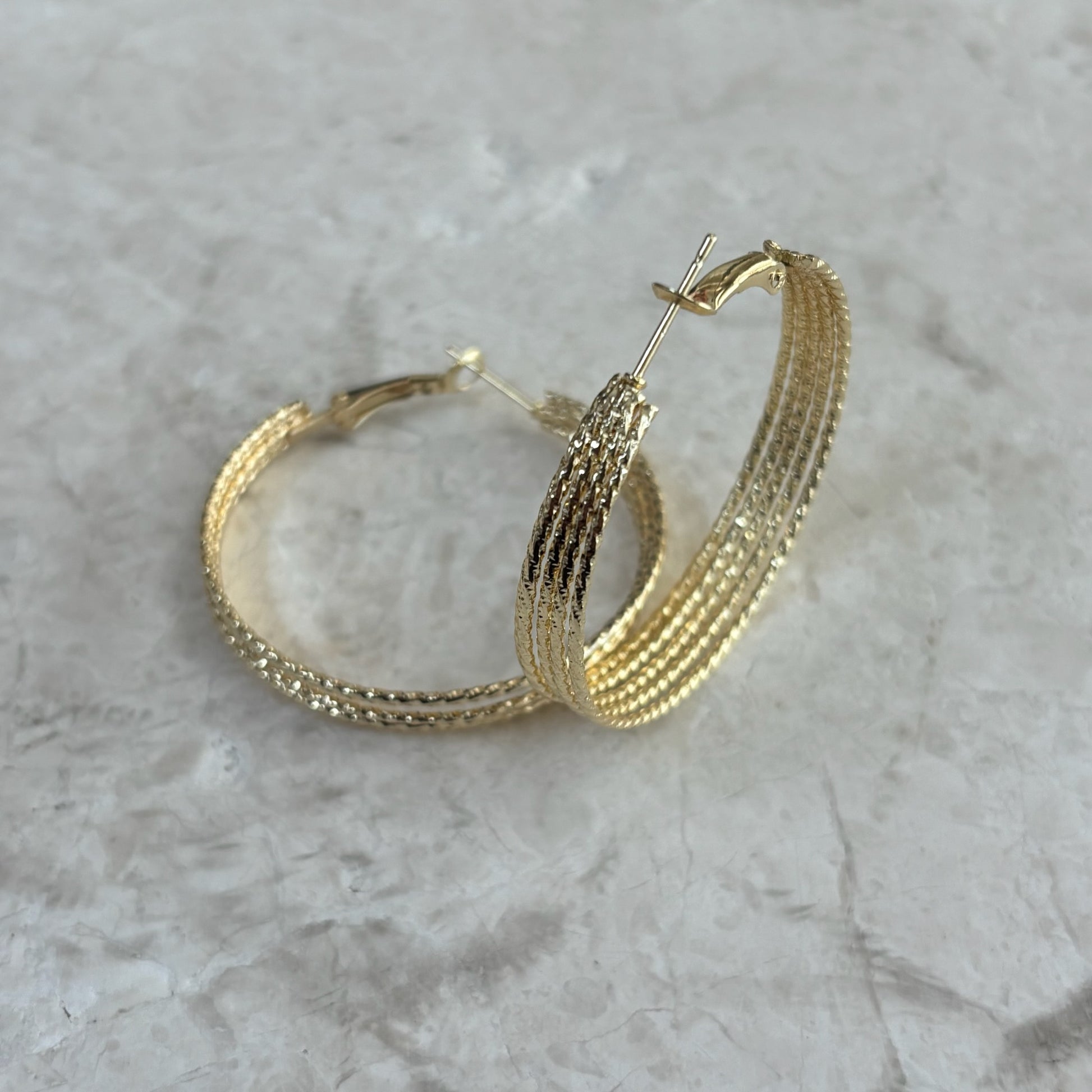 14K GOLD FILLED LIGHTWEIGHT LARGE LAYERED HOOPS