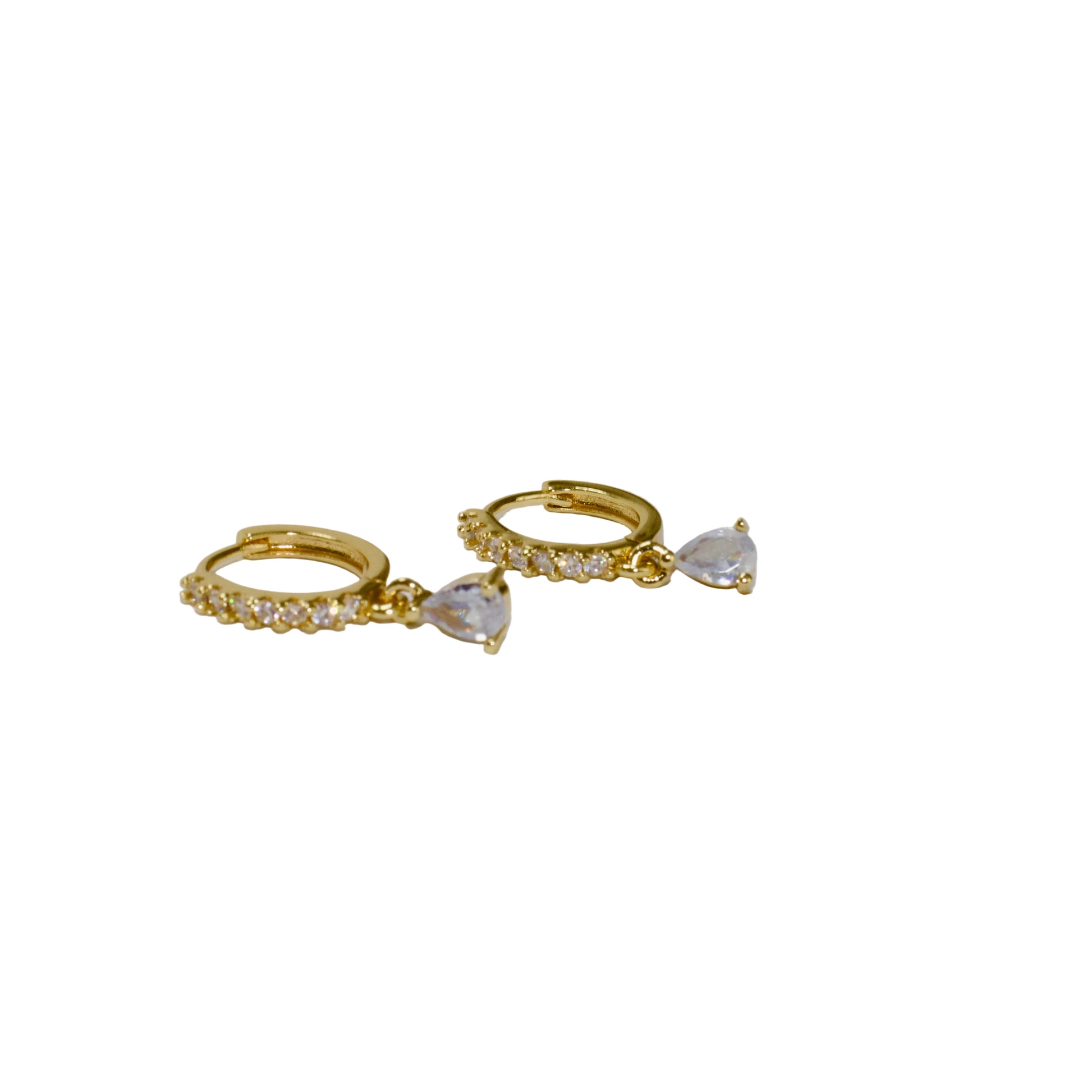 14K GOLD FILLED CZ HUGGIE EARRING WITH TEAR DROP CZ DANGLE