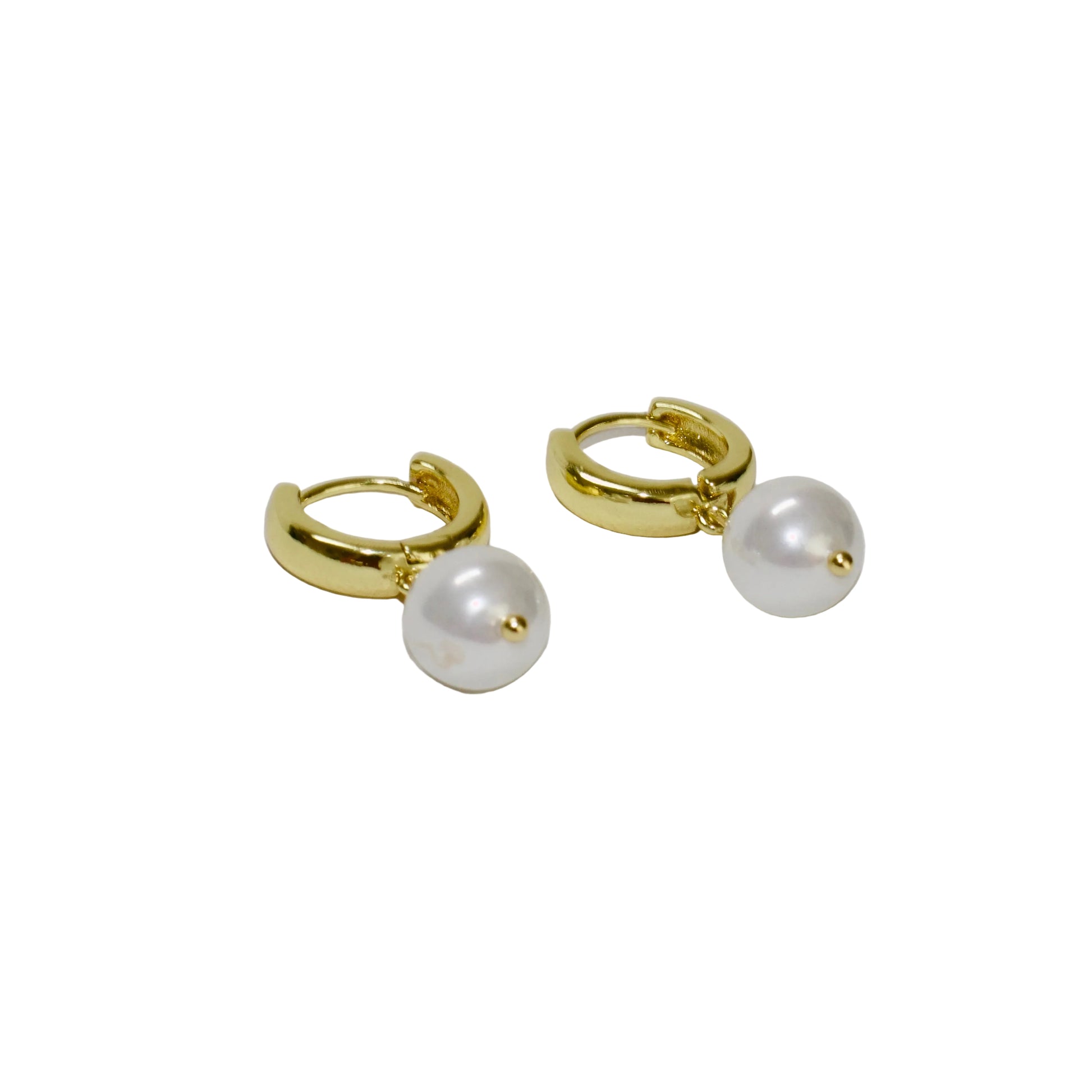 14K GOLD FILLED CHUNKY PEARL DANGLE HUGGIE EARRING.