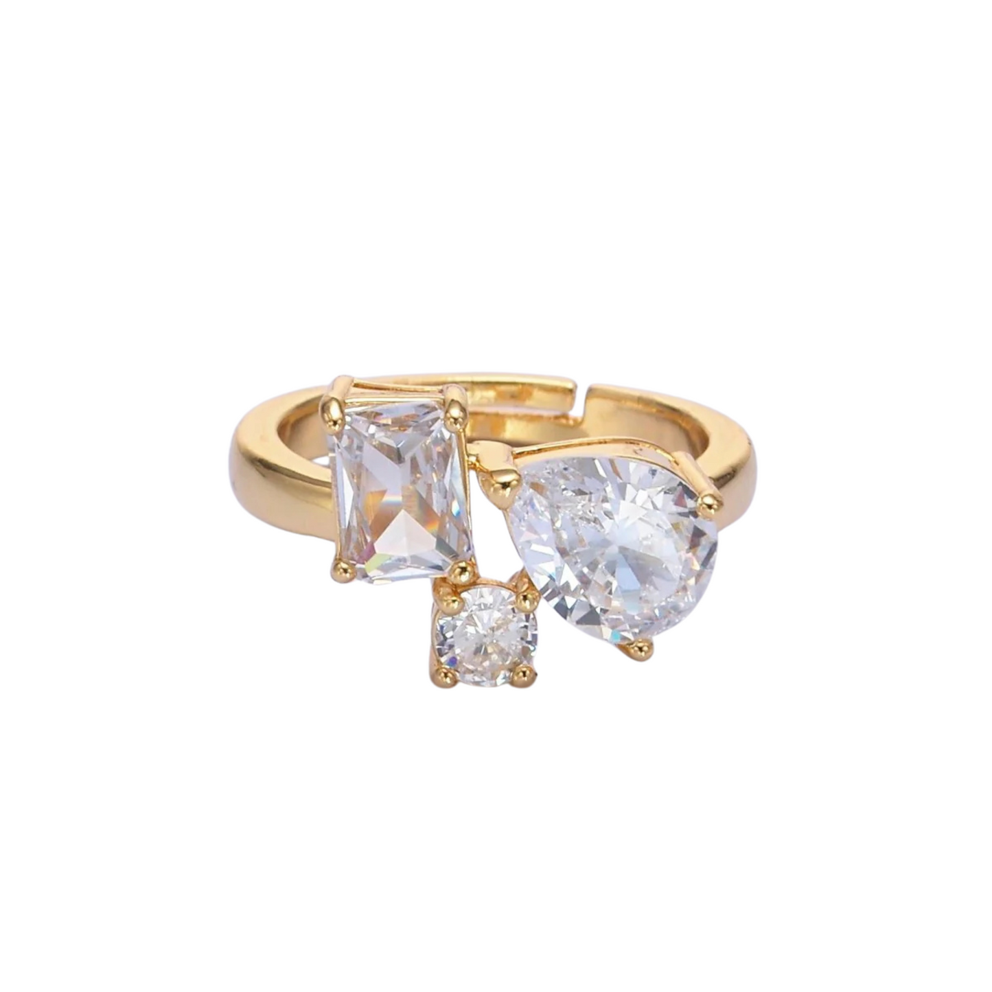 24K Gold Filled Clear CZ Baguette Teardrop Round Ring