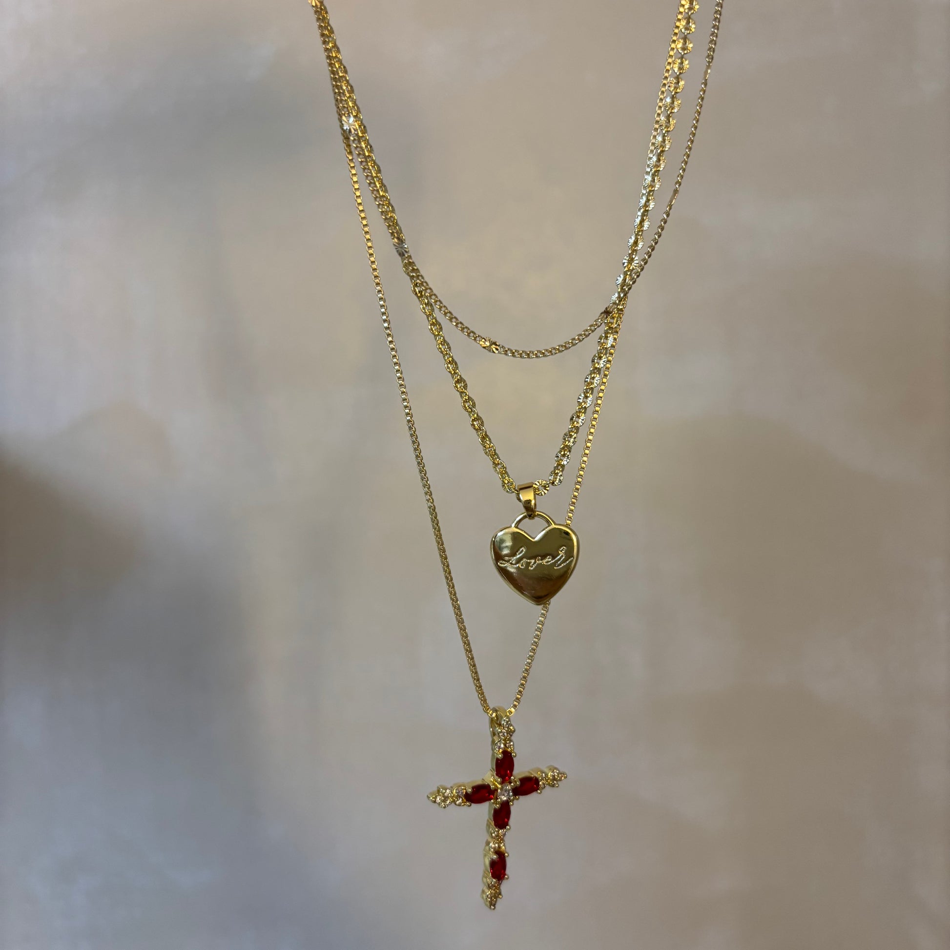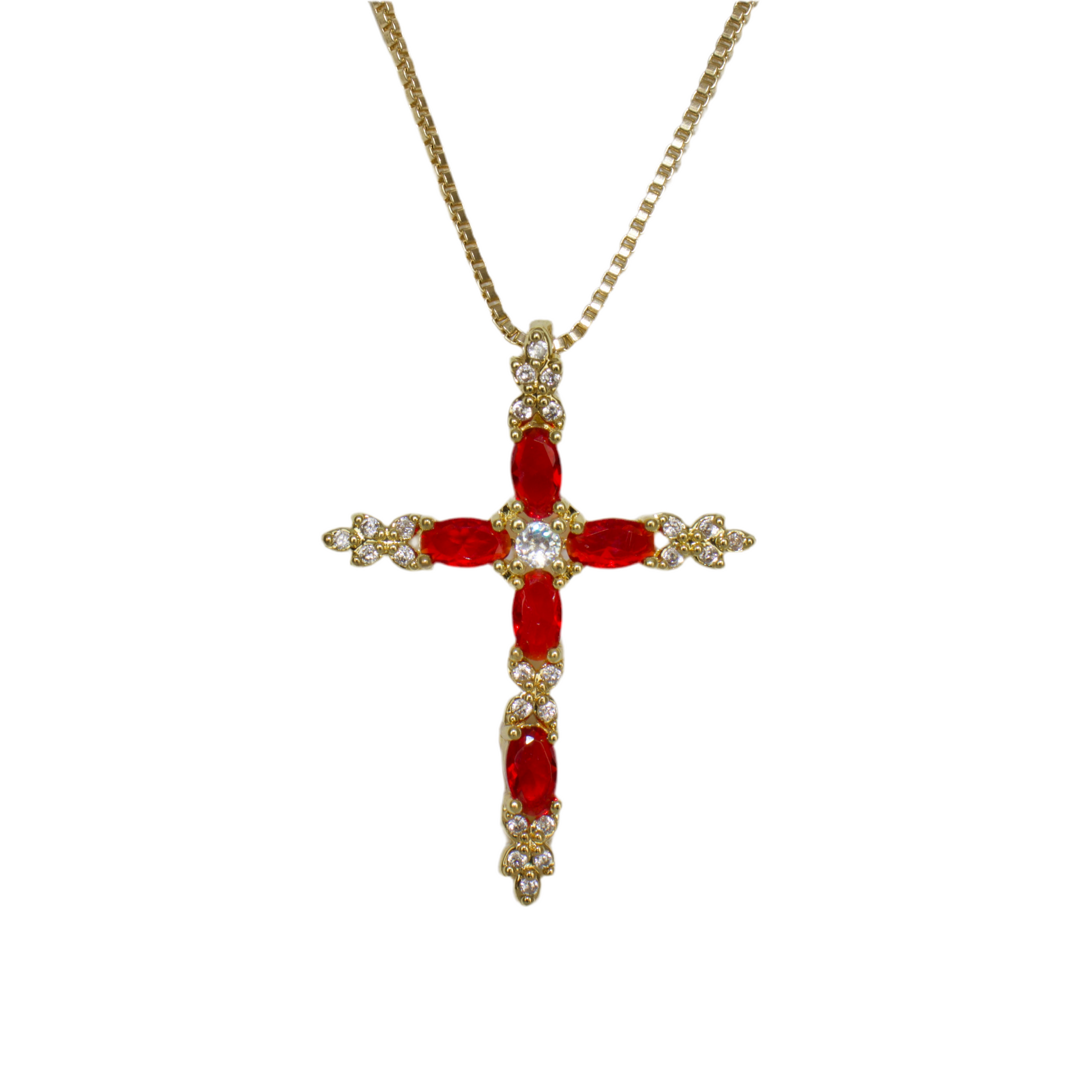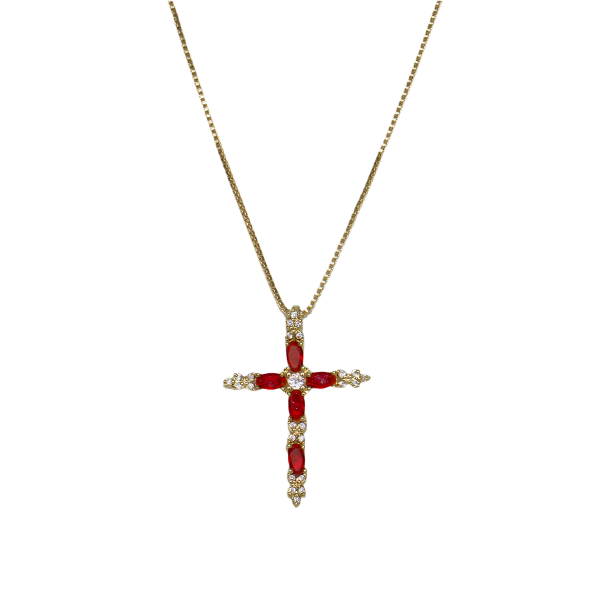 14K GOLD FILLED DAINTY BOX CHAIN WITH GORGEOUS RED CROSS PENDANT.