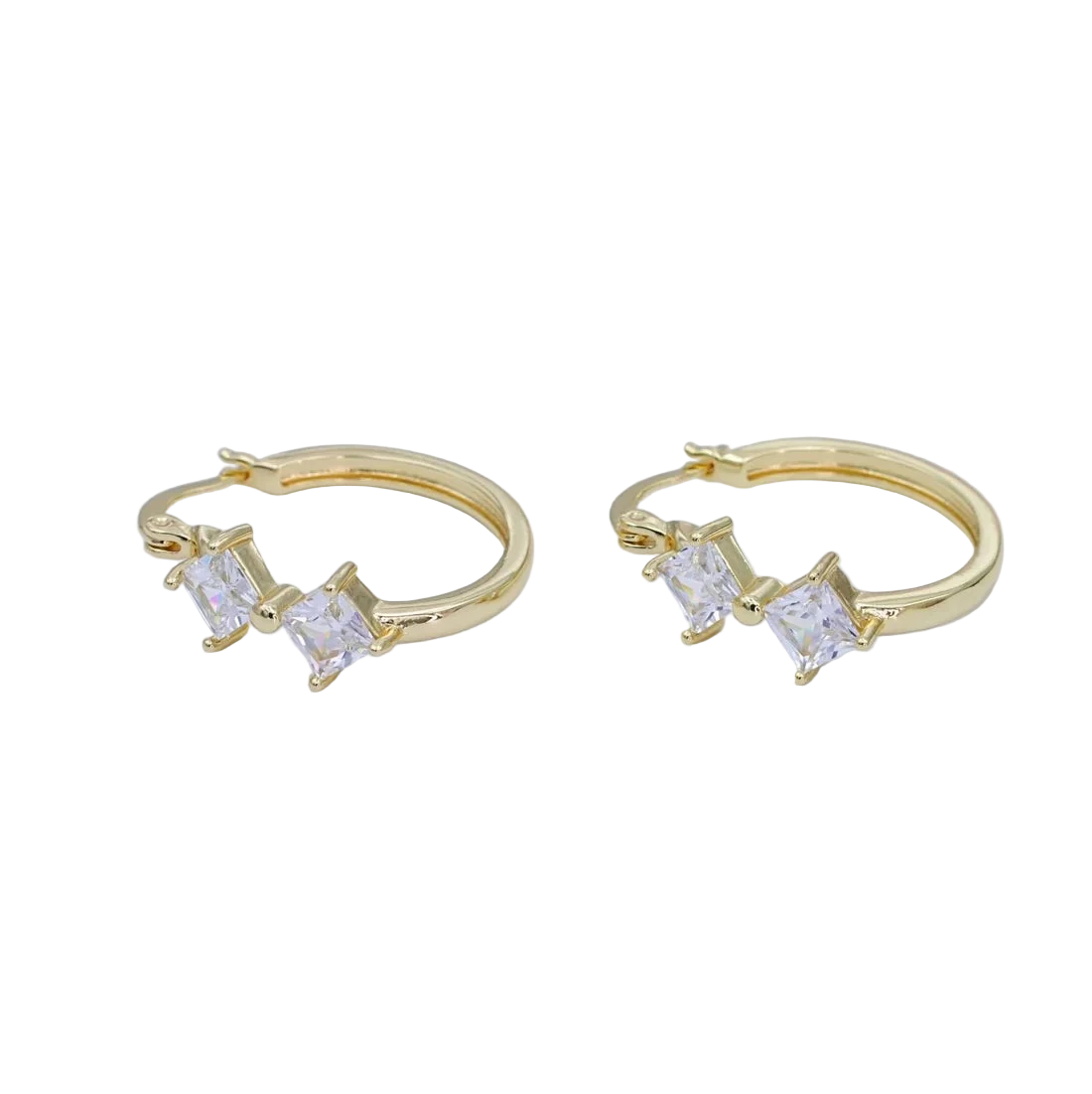 Gold Filled 25mm Rhombus CZ Latch Hoop 24K earrings.