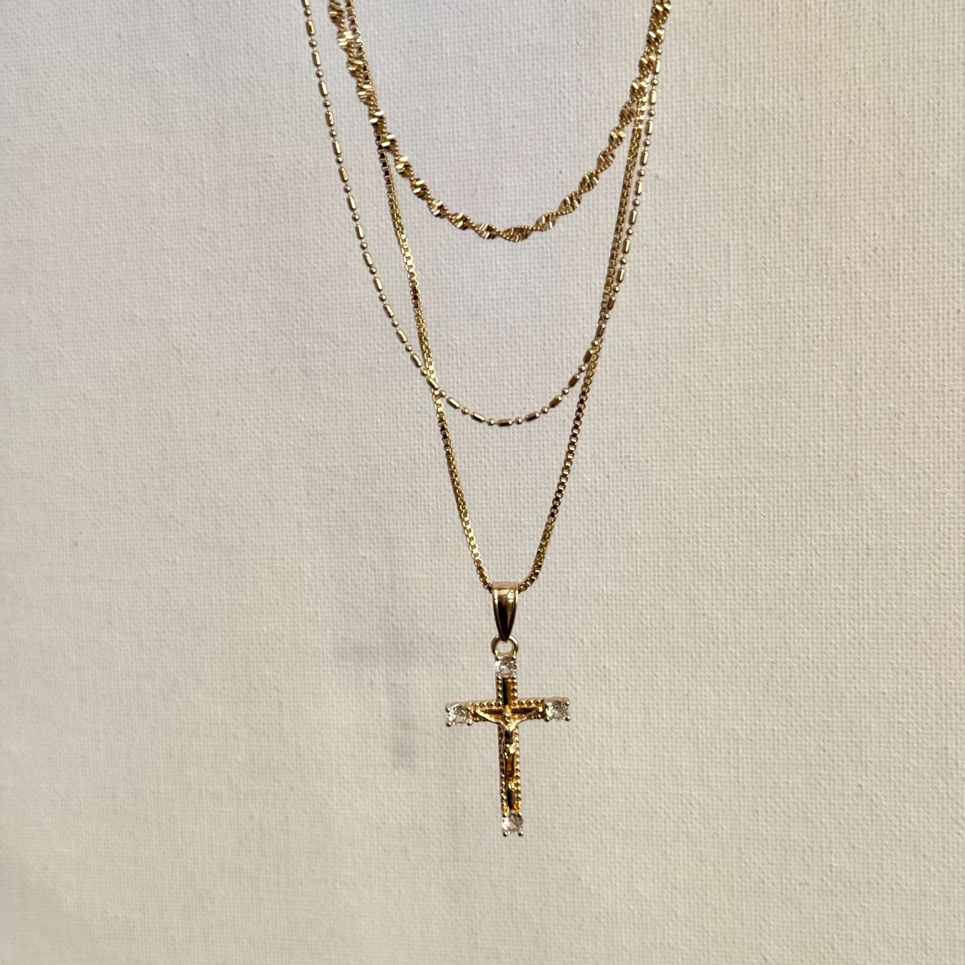 14K GOLD FILLED 20 INCH BIX CHAIN WITH CROSS JESUS PENDANT