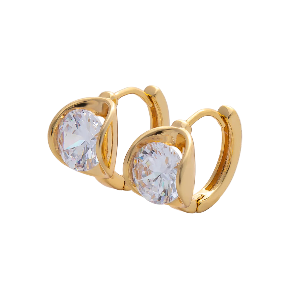 24K Gold Filled 13.7mm Clear CZ Solitaire Huggie Earrings