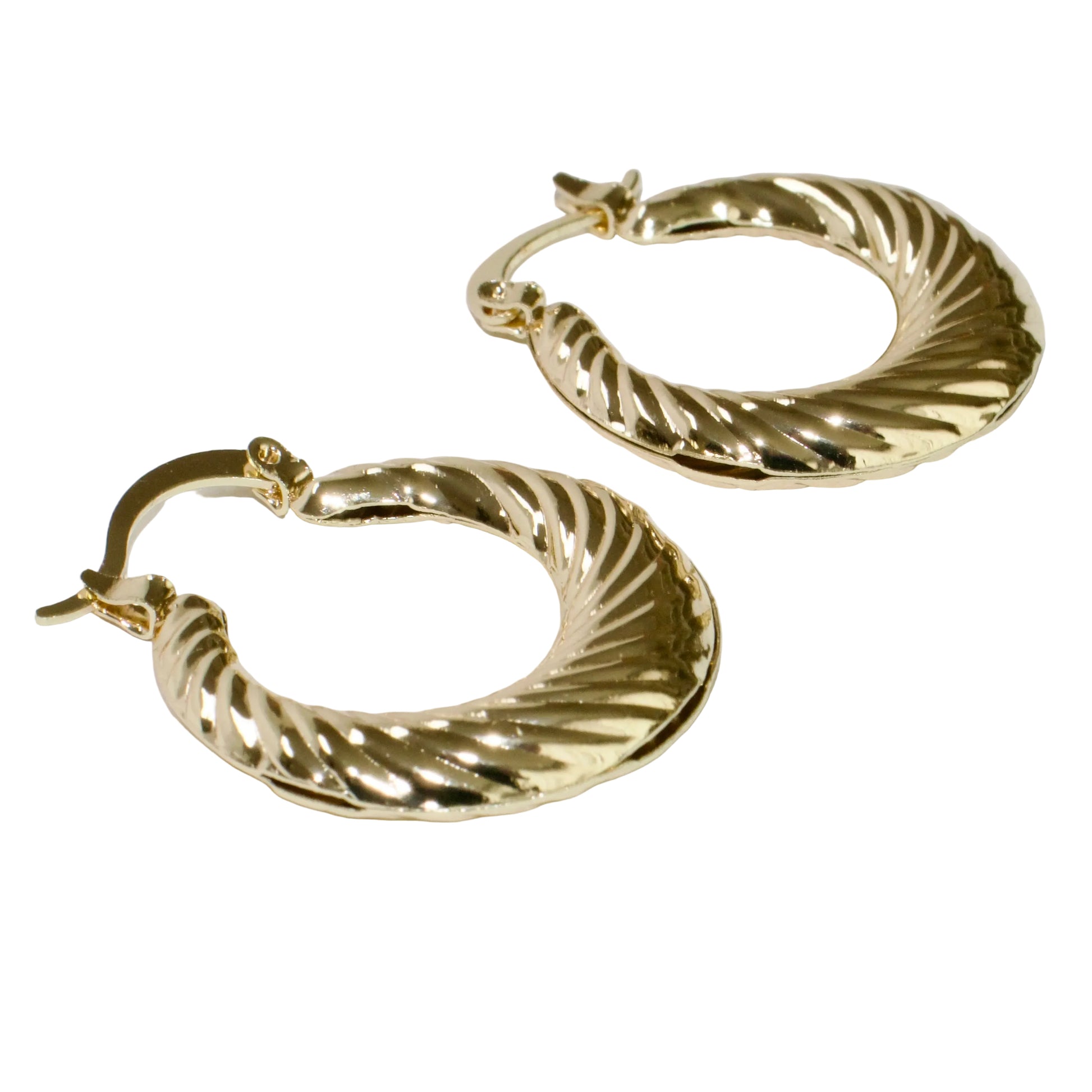14K GOLD FILLED TWIST SPARKLE LIGHTWEIGHT MEDIUM HOOP