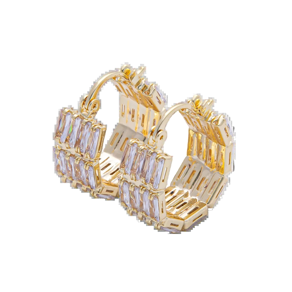 18K Gold-filled 23mm clear baguette cubic zirconia latch hoops.
