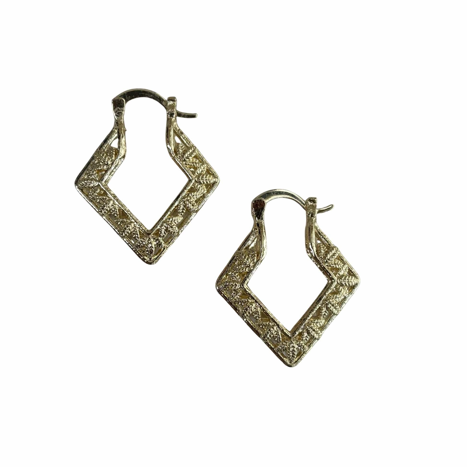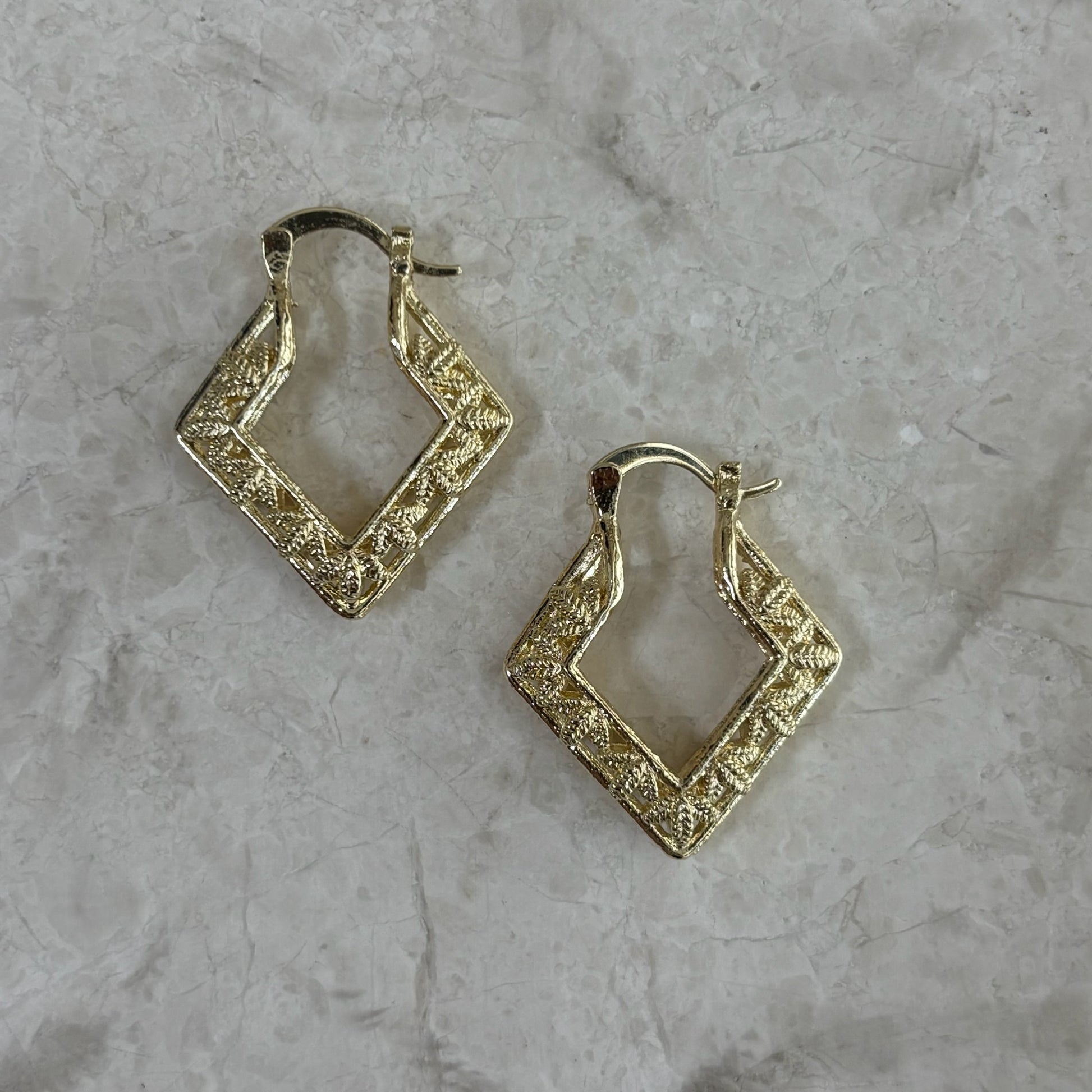 14k GOLD FILLED DIAMOND SHAPED HOOPS WITH TEXTURED DESIGN