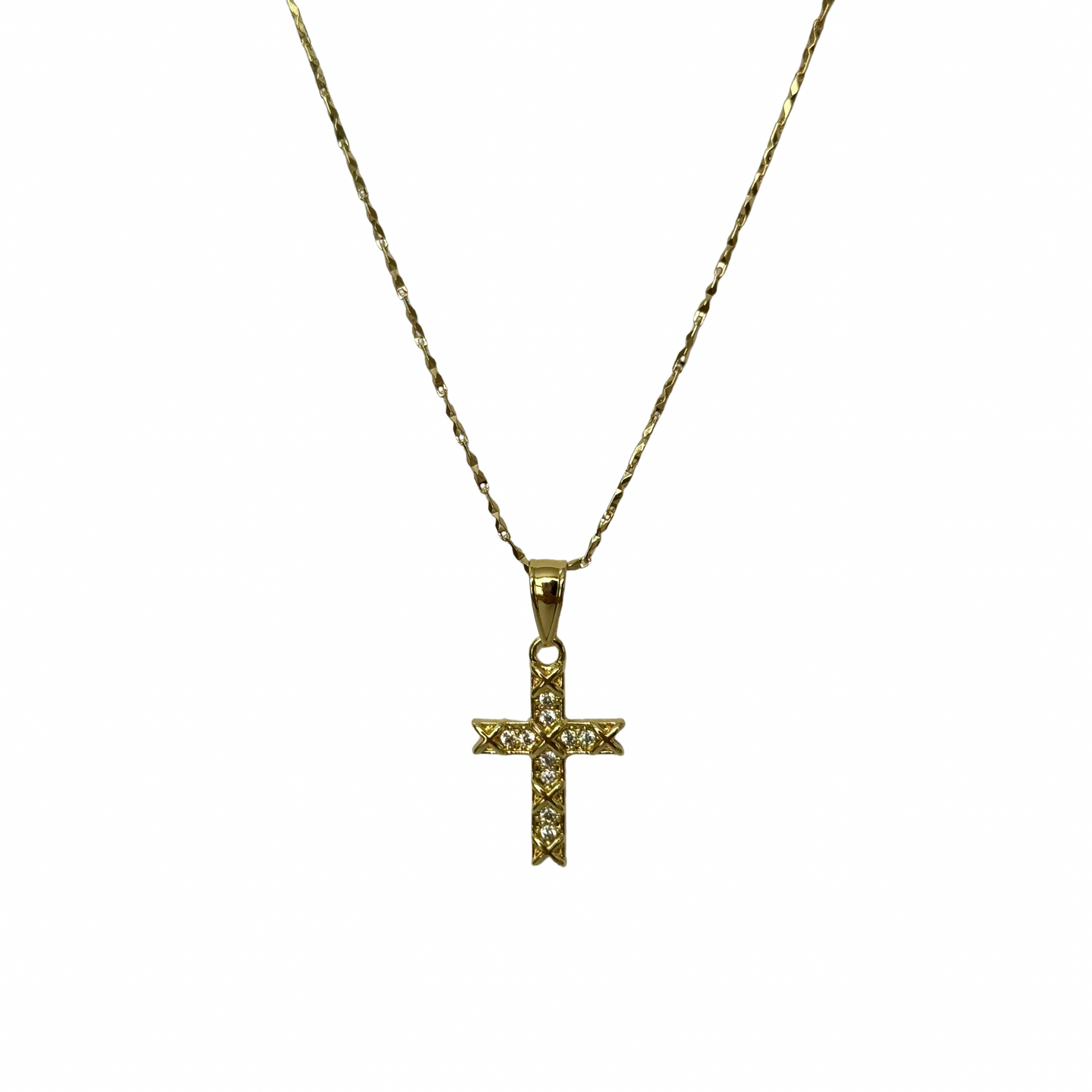 14K GOLD FILLED 18 INCH DAINTY SPARKLE CHAIN WITH GORGEOUS CUBIC ZIRCONIA CZ CROSS PENDANT PAIRS PERFECTLY WITH OUR HALO LARIAT NECKLACE