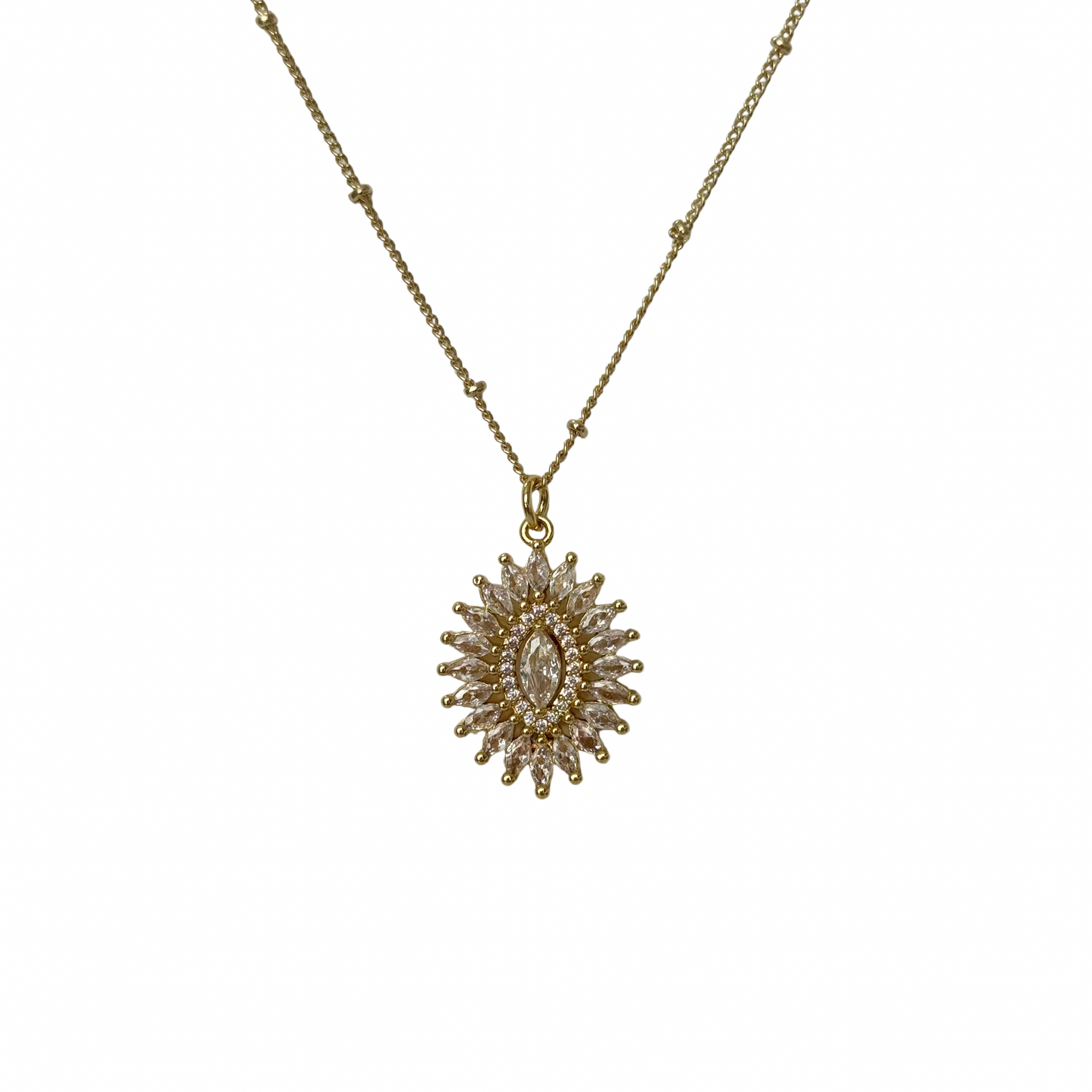 14K GOLD FILLED DAINTY 20 INCH BRAIDED BEAD CHAIN WITH ELEGANT CZ PENDANT