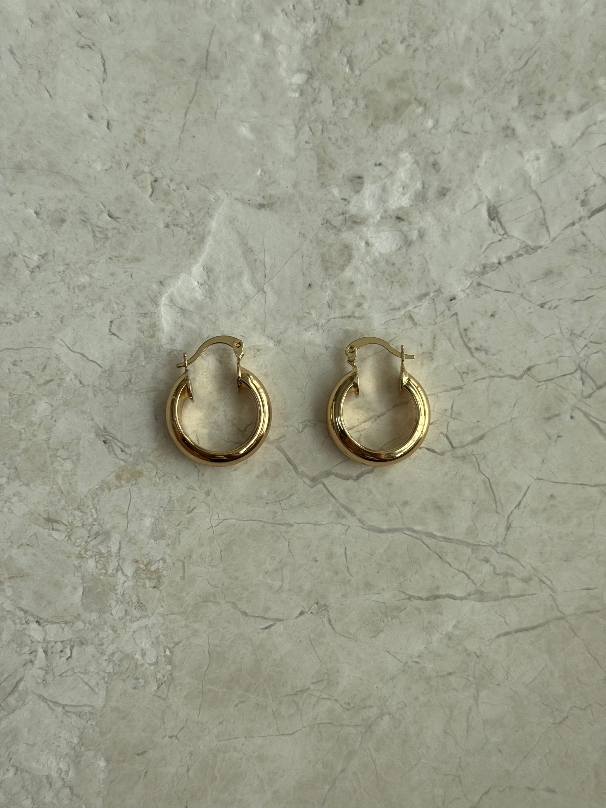 16K GOLD FILLED MINIMALISTIC CLASSIC EVERYDAY LIGHTWEIGHT MINI HOOPS. THE SMALL VERSION OF OUR LINDA HOOP.