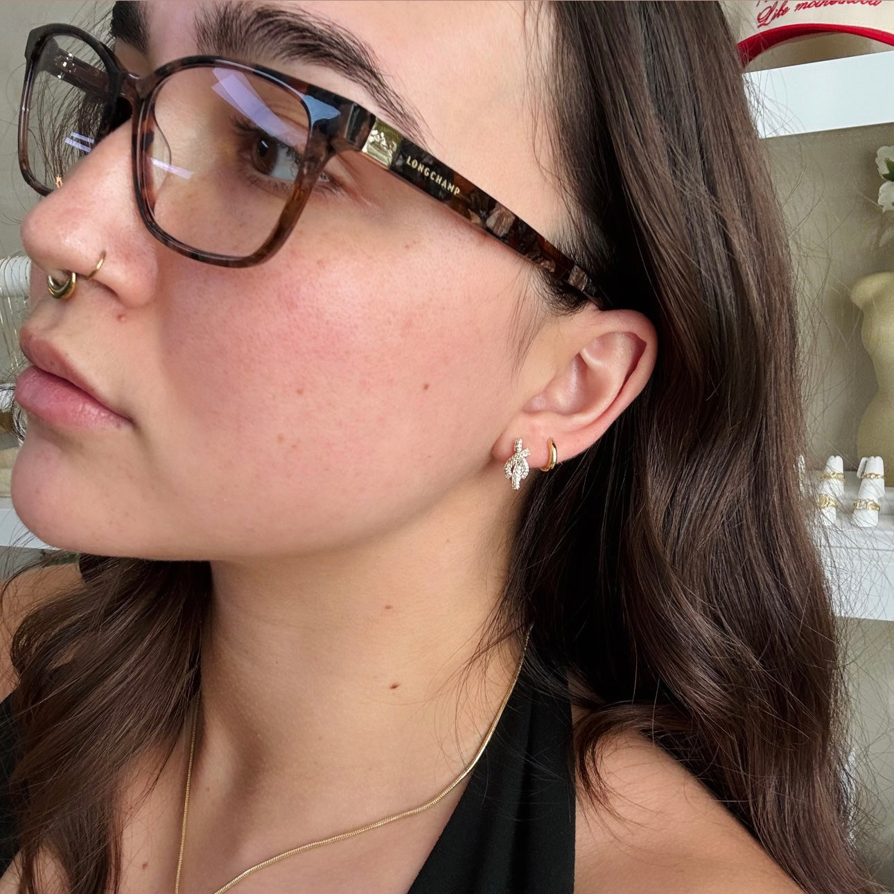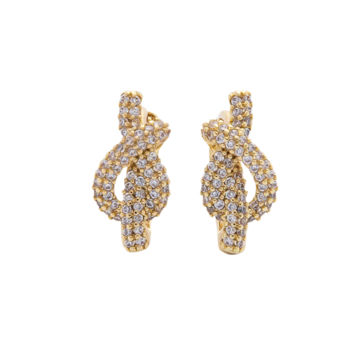 14K Gold Filled Micro Paved CZ Glamorous Crossed-Bow Latch Back Huggie Earrings