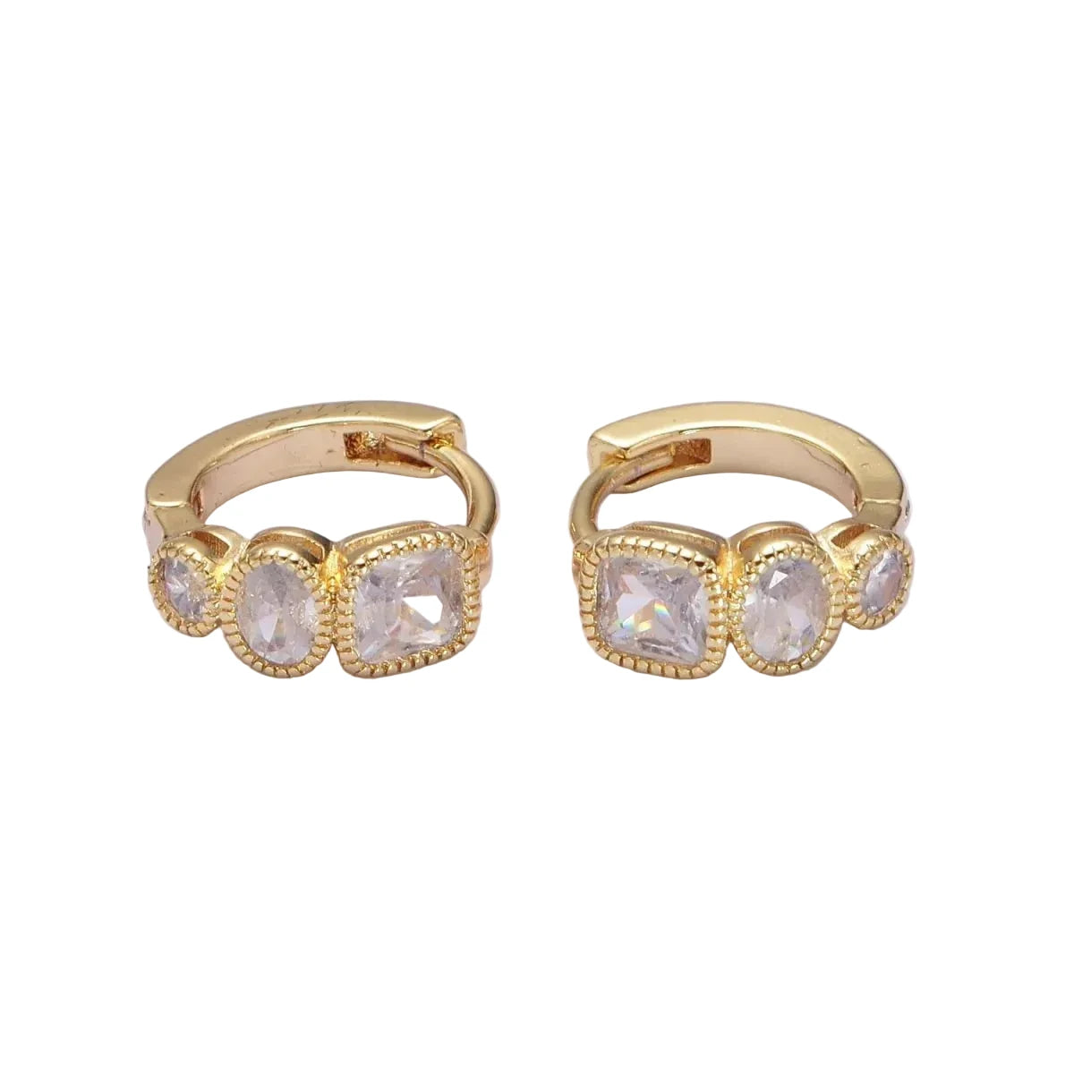 Dainty Geometric Cubic Stone Huggie Earring Square Oval Round CZ Hoop Earring