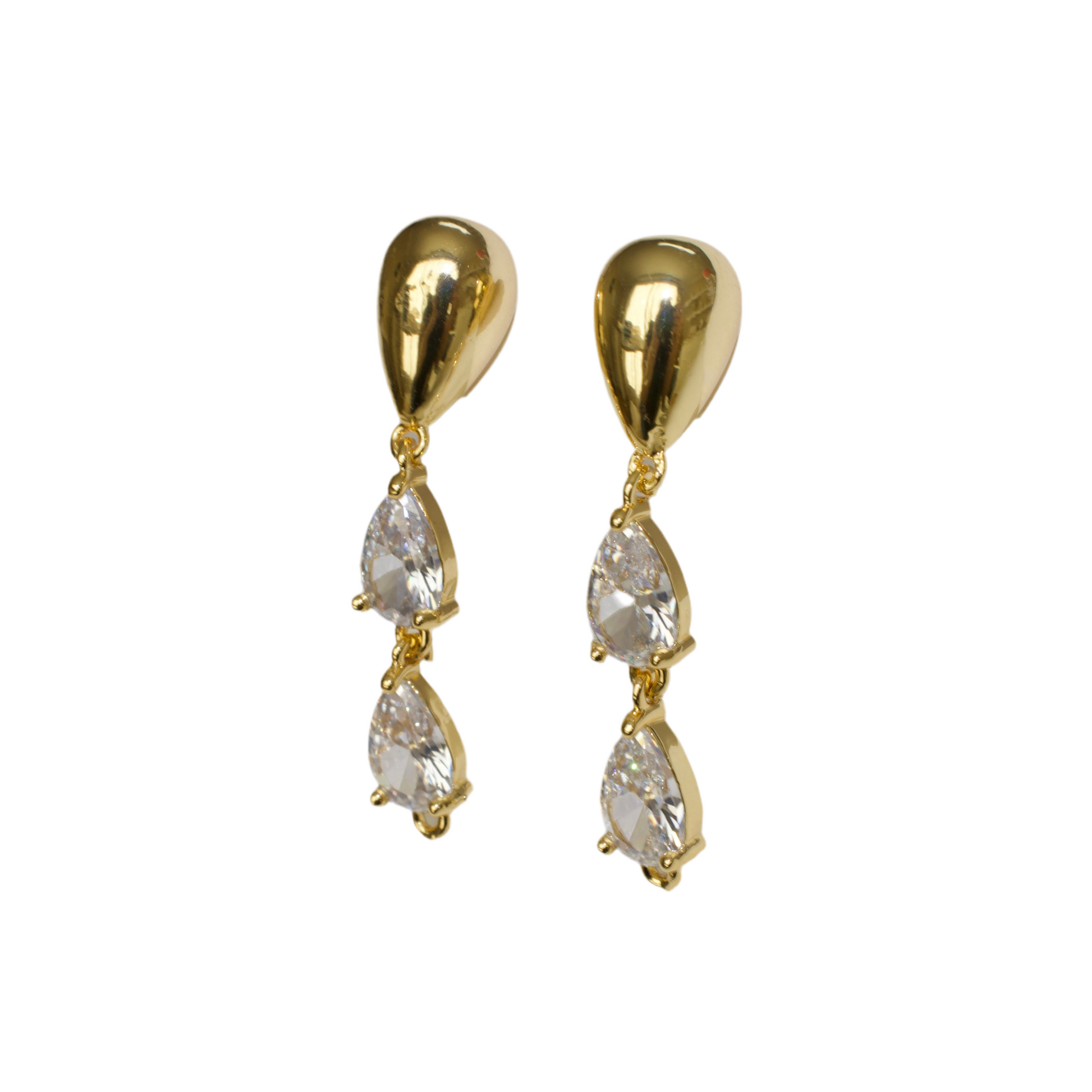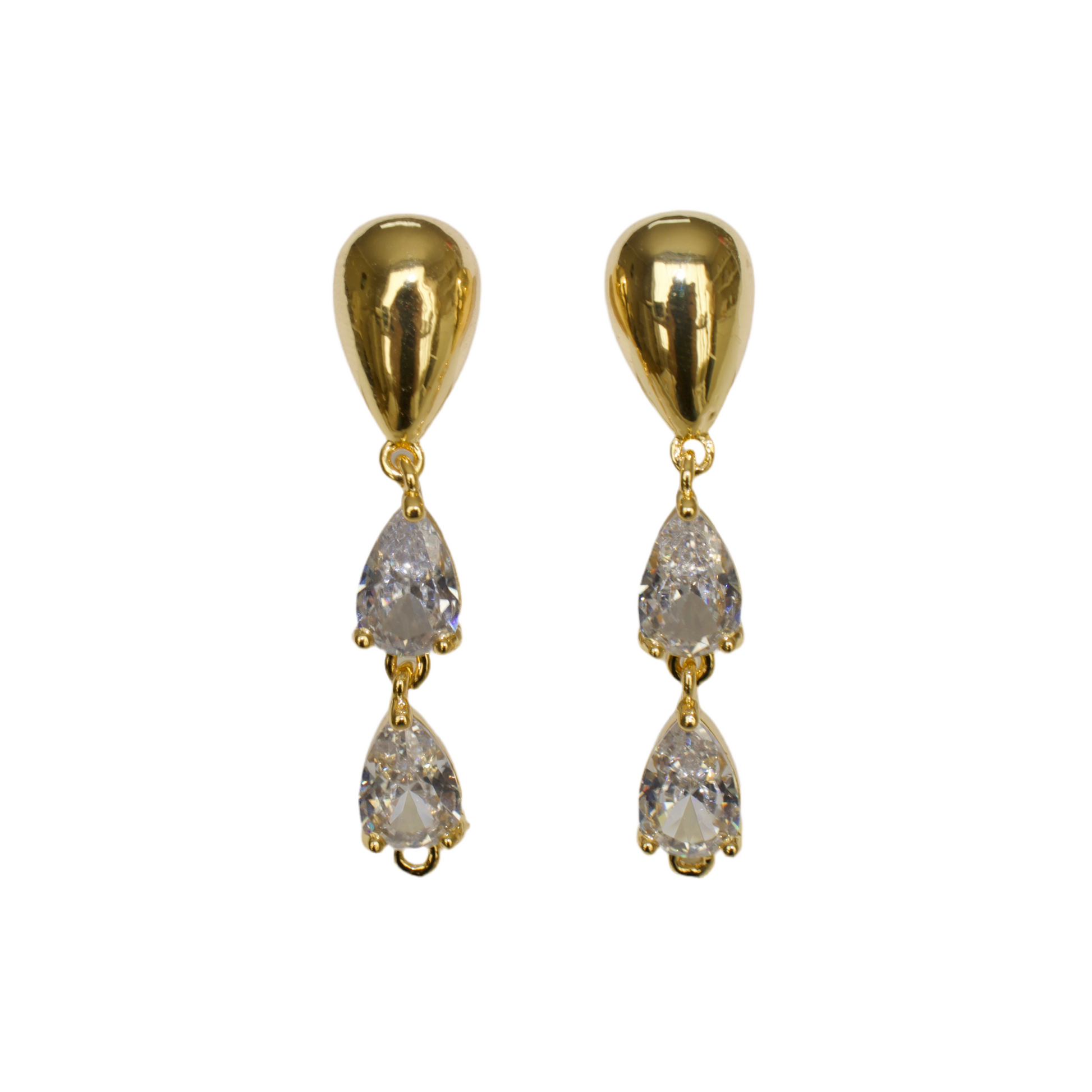 14K GOLD FILLED ELEGANT DANGLE CZ TEARDROP EARRINGS.