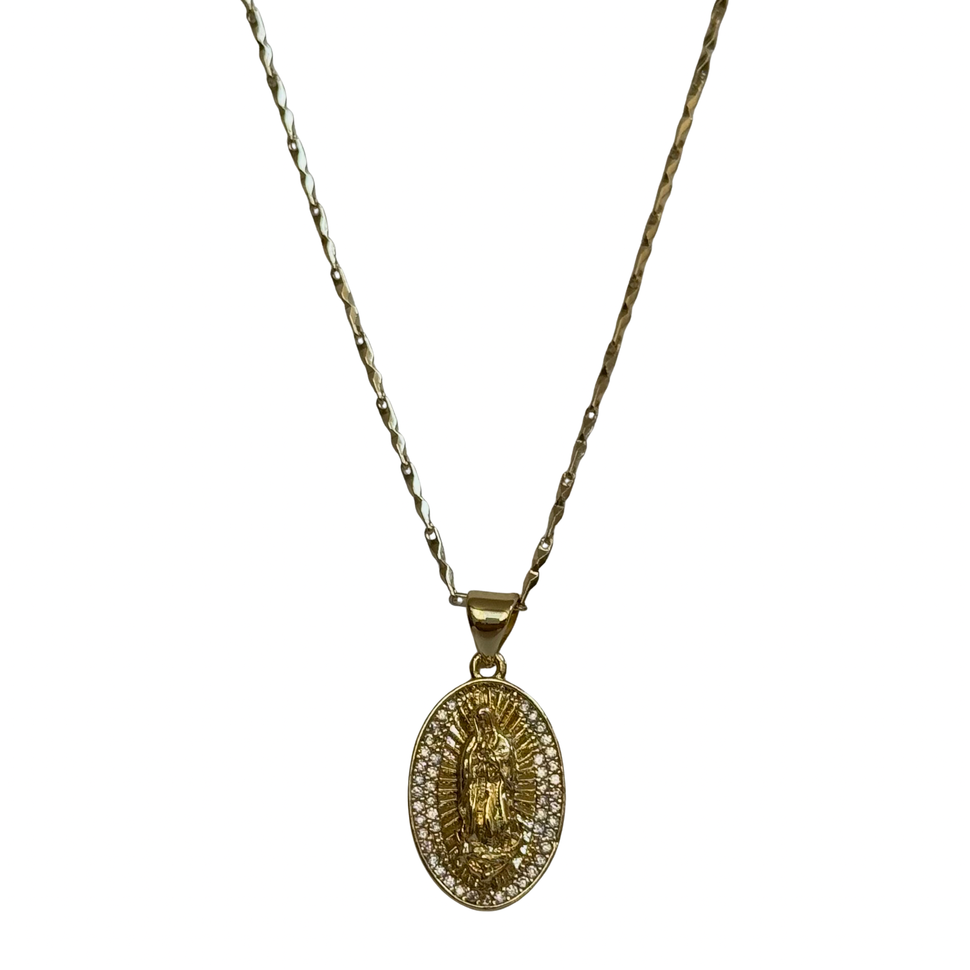 14K GOLD FILLED 18 INCH DAINTY SPARKLE CHAIN WITH CUBIC ZIRCONIA VIRGIN MARY PENDANT