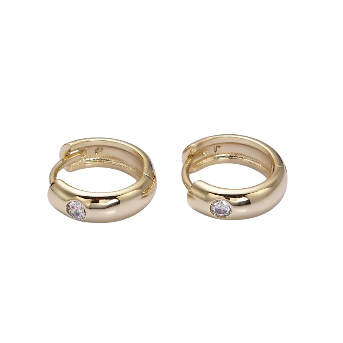 14K Gold Filled Clear CZ Dotted 12mm Huggie Earrings