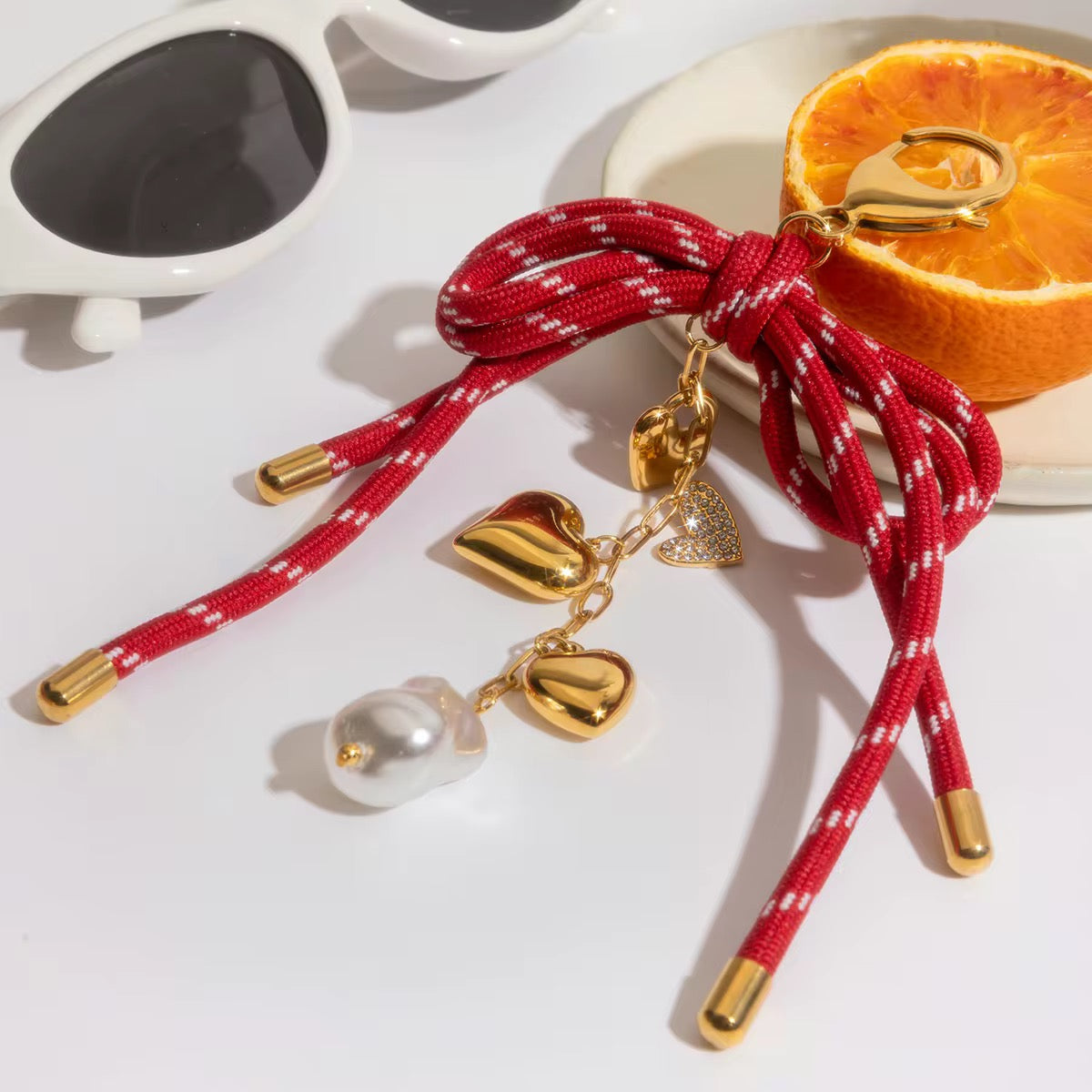 LOOKING FOR THE PERFECT PURSE CHARM? WELL OUR SUMMER GAZE BOW PURSE CHARM IS IT! PAIRED WITH OUR GOLDEN HOUR PURSE CHAIN (SOLD SEPARATELY).