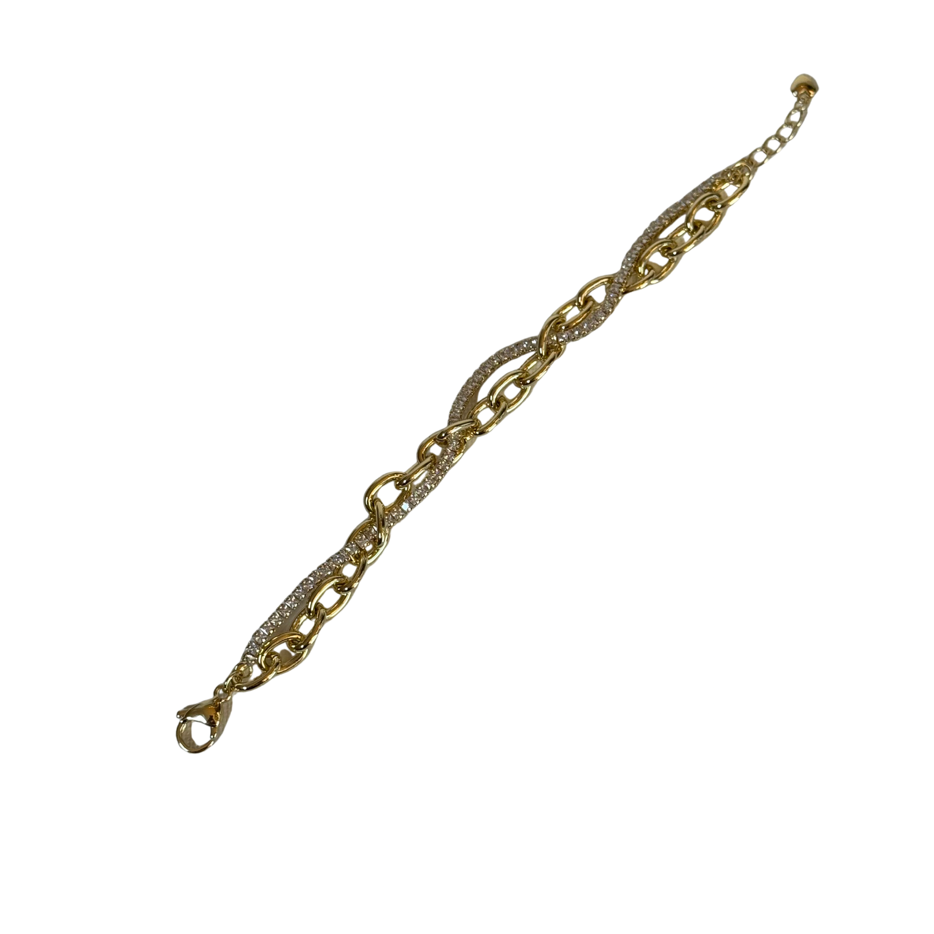 14K GOLD FILLED 2 LAYERED BRACELET WITH CHUNKY LINKS AND BAGUETTE CZ CUBIC ZIRCONIA