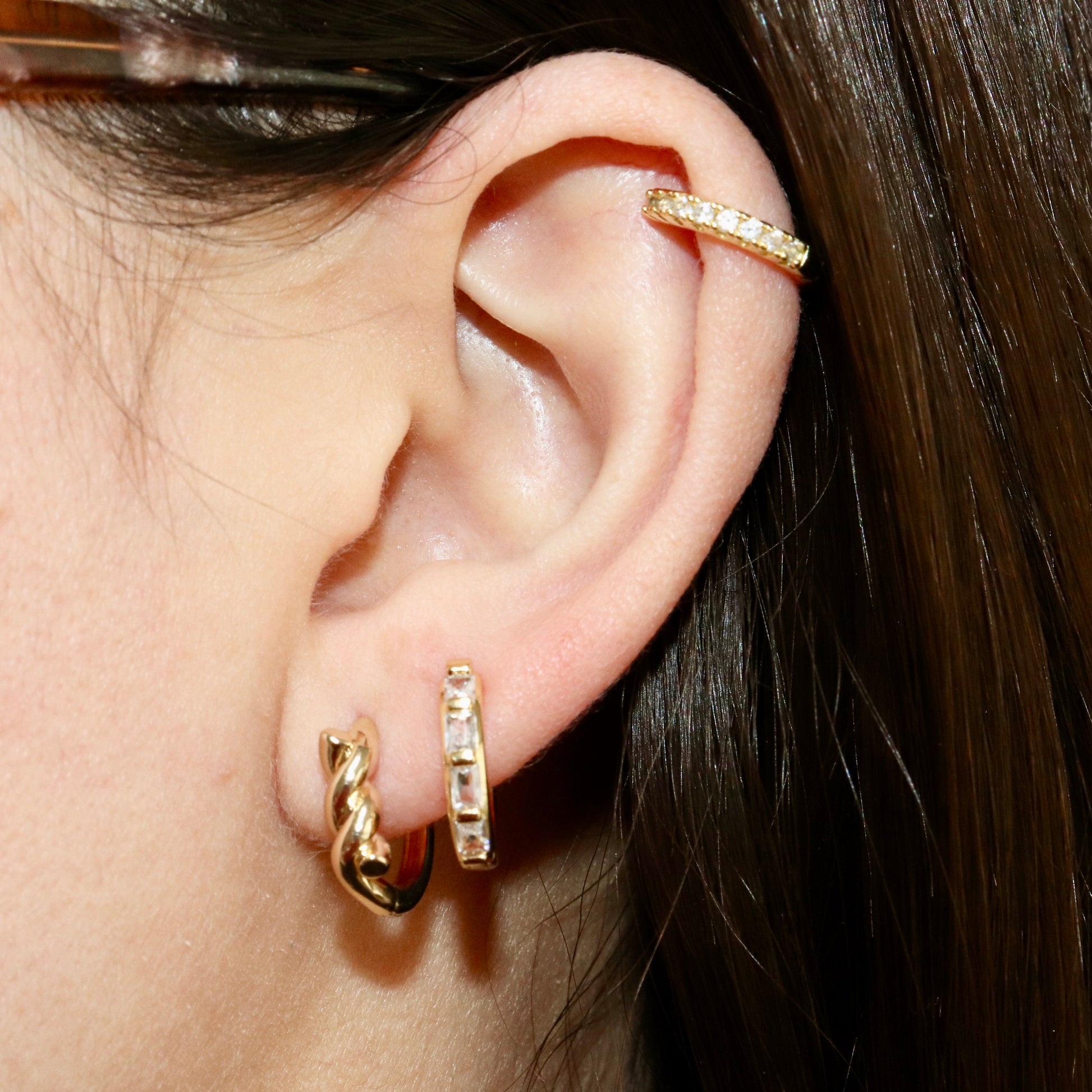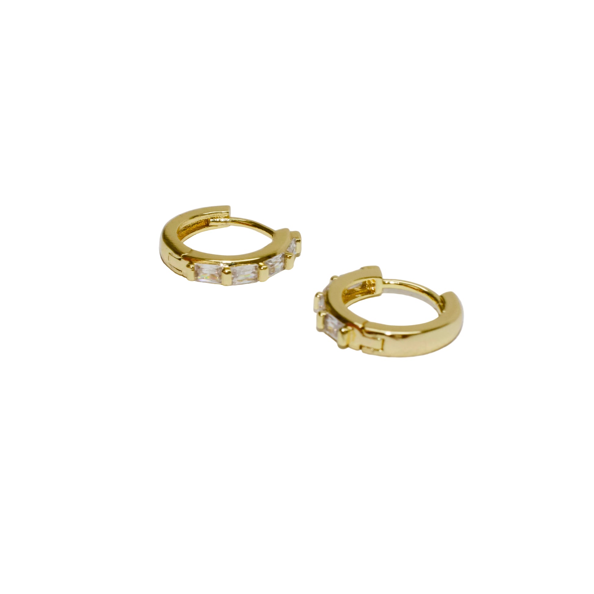 14K GOLD FILLED BAGUETTE CZ LINED HUGGIE EARRING