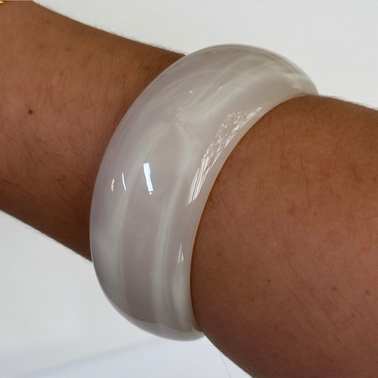 Solid Resin Acrylic Geometric Wide Bangle Bracelet, comes in two colors.